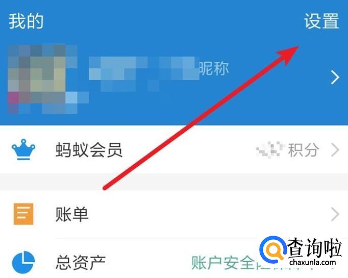 首先打开支付宝,在‘我的’页面上,点击‘设置’