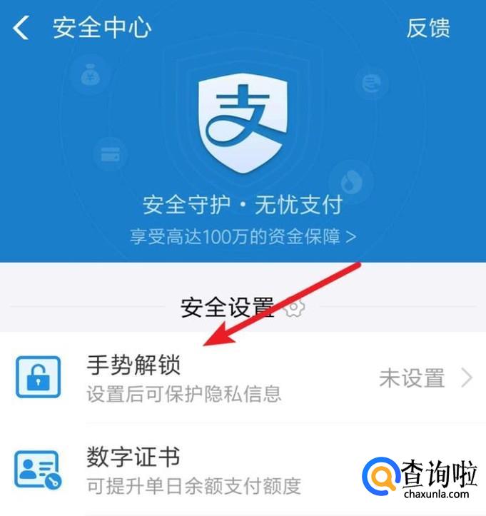来到安全中心页面,点击‘手势解锁’