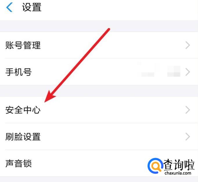 在设置页面,点击‘安全中心’