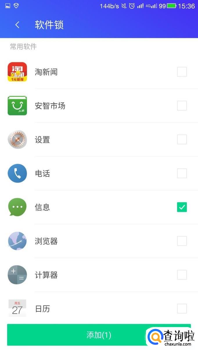 打开后是这个样子的,我们可以添加想要加锁的软件,点击添加