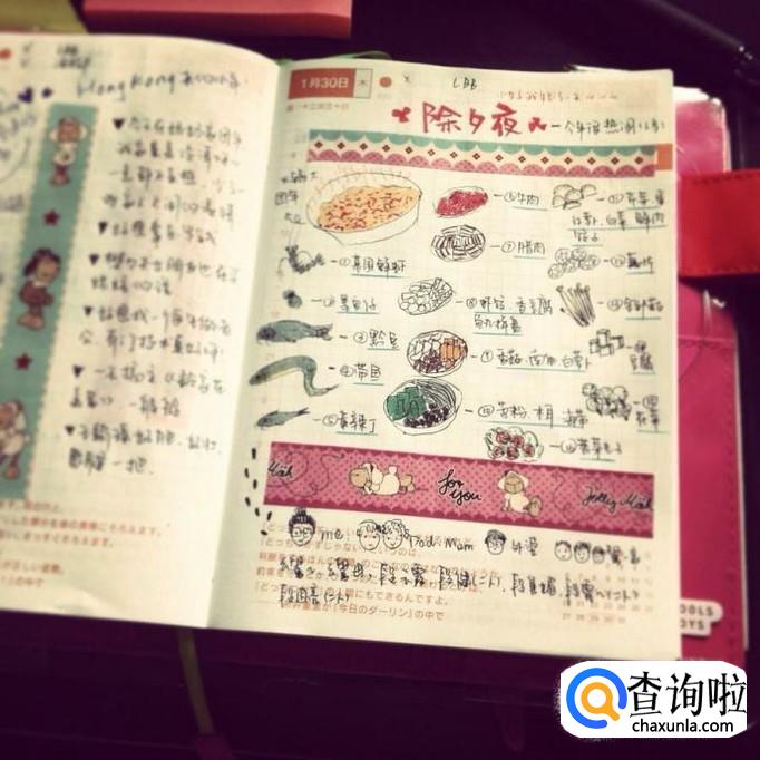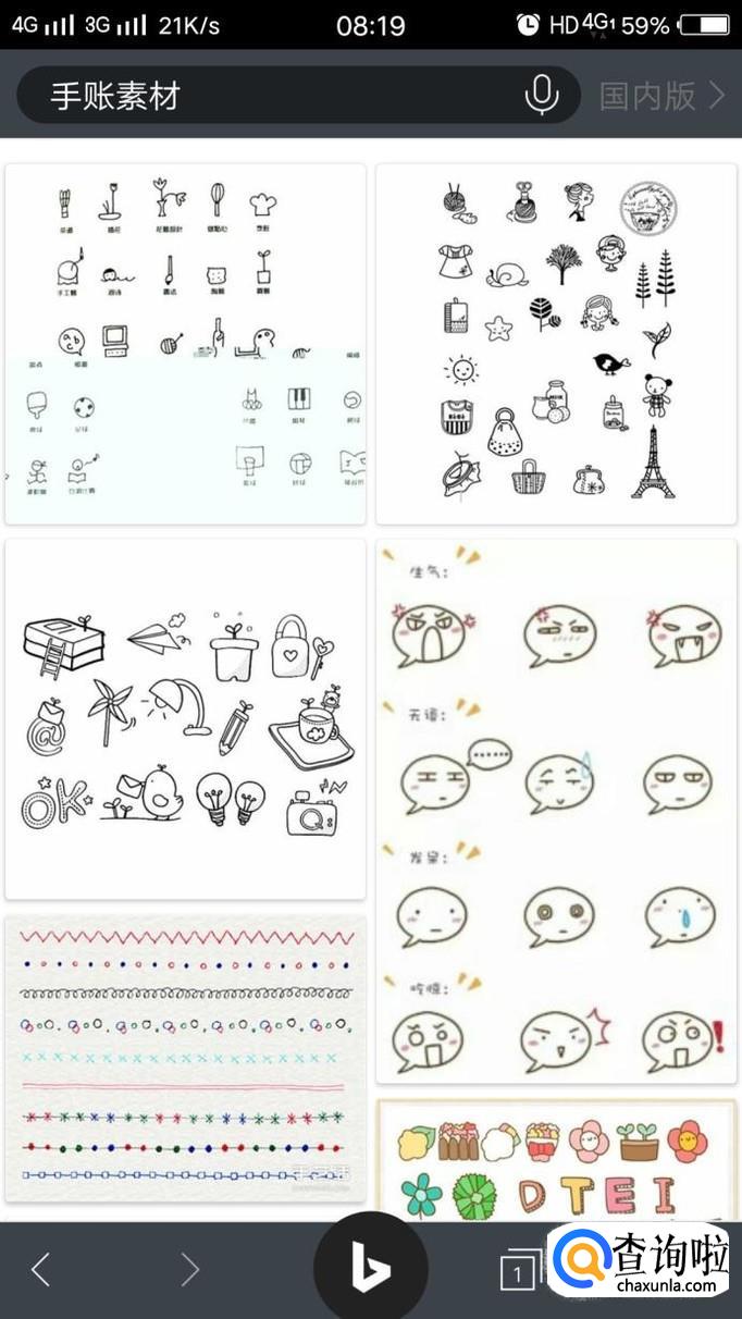在网络中搜索手帐素材,关键字输入到搜索引擎中,会有很多素材,挑选自己的喜欢的,在每一页画上自己喜欢的素材,一本手账本便能制作完成。