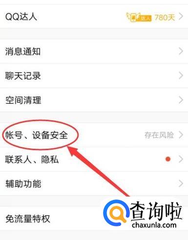 进入之后,找到“账号、设备安全”,点击并进入,如图所示。
