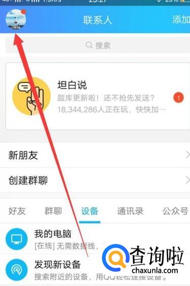 打开手机,找到QQ,点击并进入,进入之后,点击自己头像,如图所示。