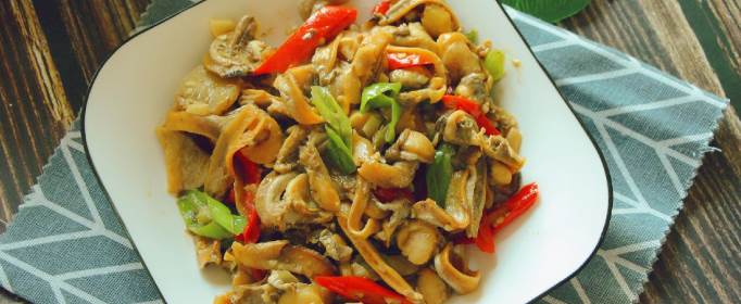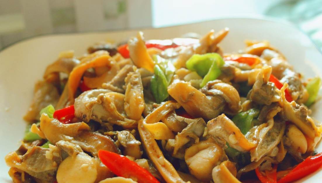 河蚌做法步骤:取出蚌肉,去掉泥肠,用盐洗干净粘液。锅中烧水,放入料酒、花椒、姜丝,倒入蚌肉焯水,捞出沥干水分。尖椒切圈,生姜切丝。焯水的蚌肉改刀成小块,锅热油,爆香姜丝。放入尖椒圈炒香,倒入蚌肉。加入料酒、蚝油、生抽翻炒均匀即可出锅。