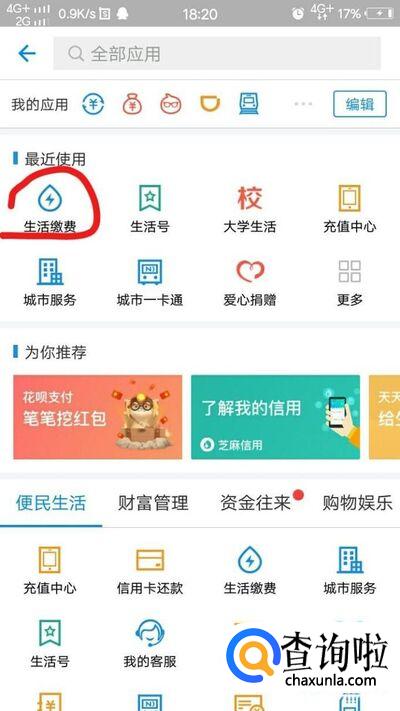 然后,我们在首页点击“更多”,找到“生活缴费”,并且点击它。