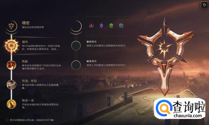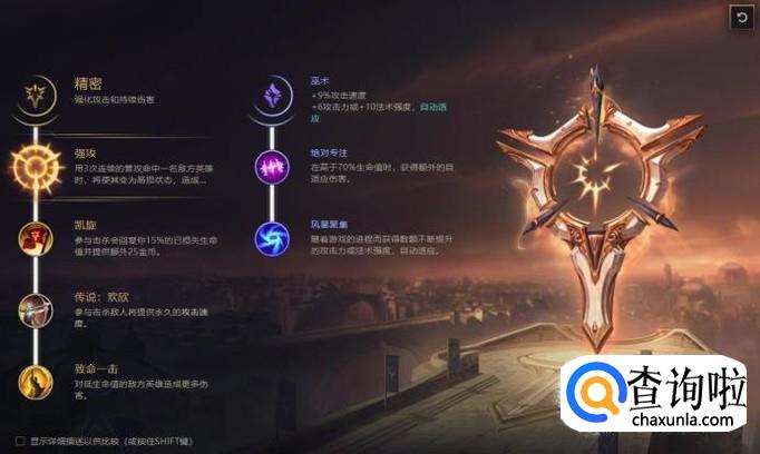 然后选择强攻和凯旋,带强攻在前期gank时能打出爆发伤害,而凯旋可以恢复生命值和获得金钱