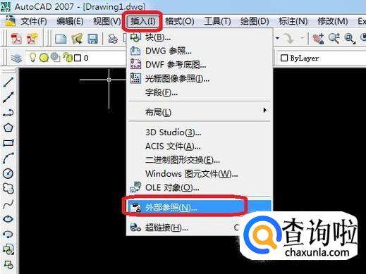 首先,我们打开CAD软件,如图所示,点击“插入”,“外部参照”。