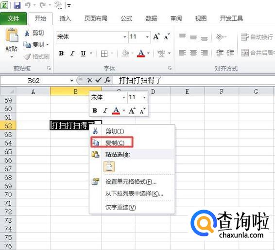 之后我们拖动鼠标来选中里面的文字,然后我们右击选择复制,这样我们就只复制了文字了。