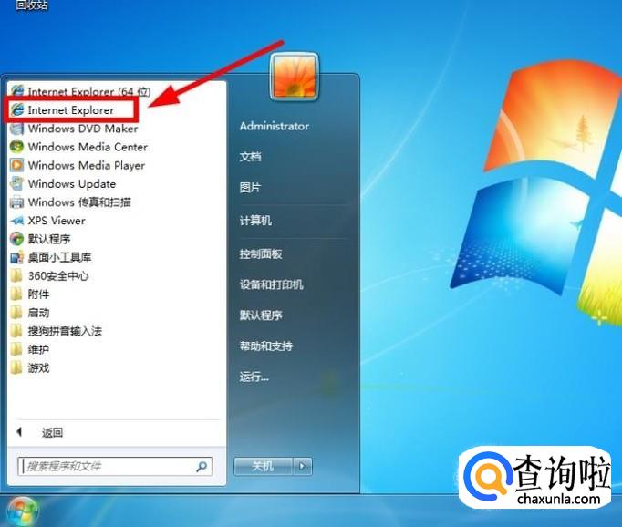 重启电脑后,打开开始菜单,点击“ Internet Explorer”(IE浏览器)