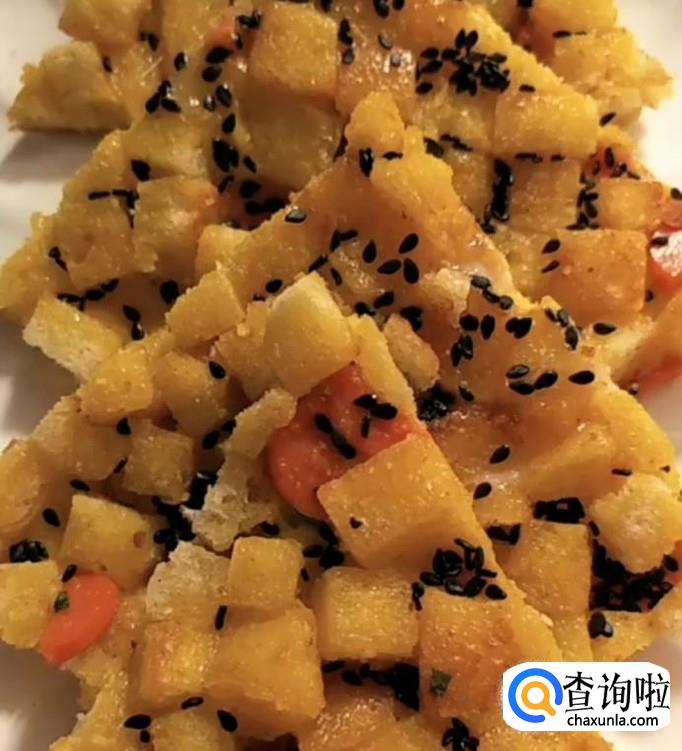 早餐中式披萨馒头火腿饼,将两个剩馒头用刀切成小丁,放入锅中煎至金黄,放入火腿丁,再放入葱花,翻炒均匀,再准备一个鸡蛋加适量盐打散,淋上鸡蛋液,撒适量黑芝麻,煎熟后切块,就可以吃了。