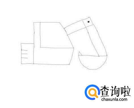 首先画出挖掘机的铲斗,然后在铲斗的基础上画出挖掘机的前臂,如图所示: