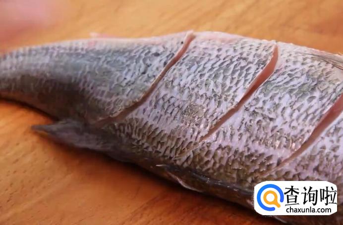 鱼身抹料酒3勺,适量盐,鱼肚中放入大葱1段腌制10分钟。