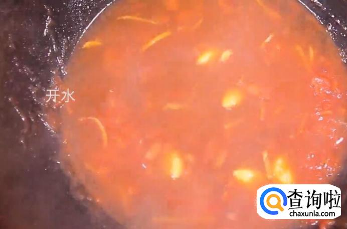 西红柿顶部切十字,加开水烫一下,剥皮。