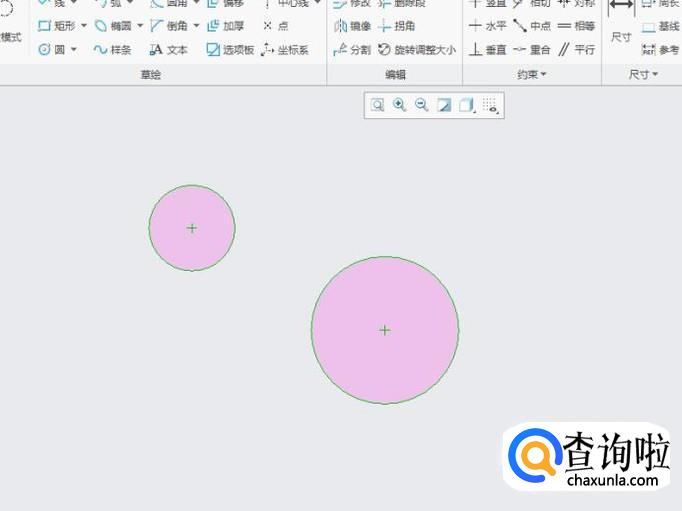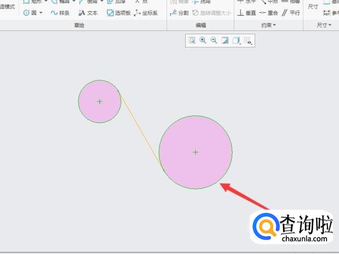 直线相切适用于直线与两断线进行相切,在草绘界面先绘制两个圆,如图所示。