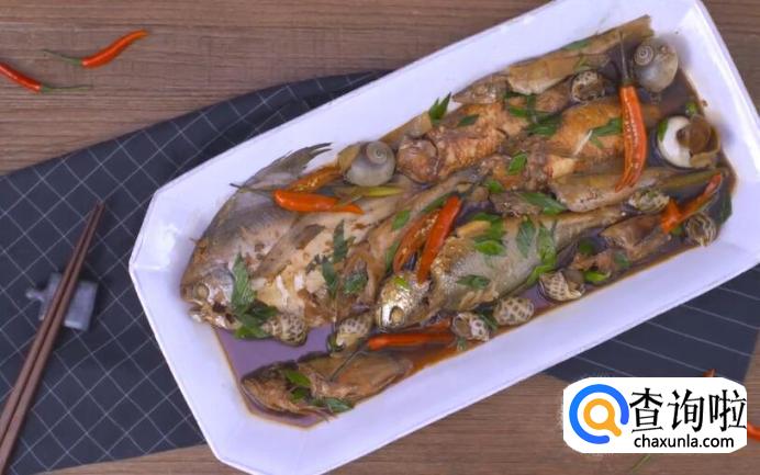 黄鱼1条、鲳鱼1条、马头2鱼、虎头鱼2条、沙尖3条、花螺8个、香螺3个、生抽、白醋、姜、青蒜苗少许、红尖椒6-8个、盐、糖、开水适量。