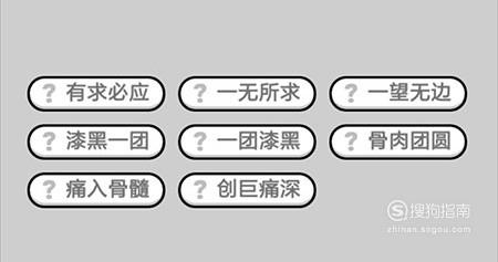 第498关:有求必应、一无所求、一望无边、漆黑一团、一团漆黑、骨肉团圆、痛入骨髓、创巨痛深。