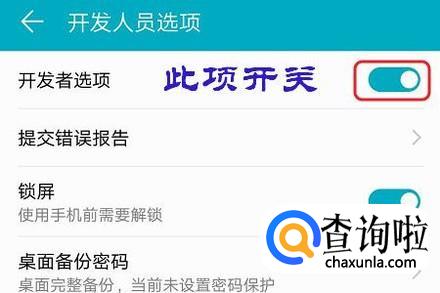 点击进入到这一项,然后在页面最上方将“开发人员选项”后面的开关打开即可开启此功能,同样将按钮拨向左侧即可关闭它;