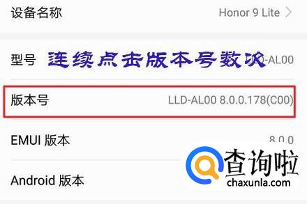 进入到手机信息页面以后,我们连续点击页面中的“版本号”六七次,这样再按照刚才的方法即可找到开发人员选项了;
