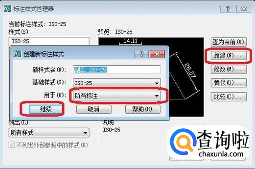 选项框中点击“新建”,然后选择“用于所有标注”,点击“继续”。