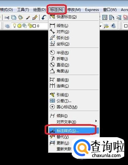 如果是复杂图形,要连续进行多个标注,我们最好新建一个样式,如图所示,点击“标注”,下拉菜单后选择“标注样式”。