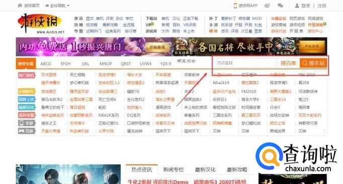 如果知道游戏名称的话,可以在游侠网中的搜索框进行搜索,如下图所示: