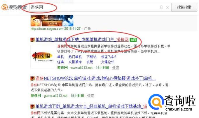 浏览器搜索【游侠网】,点击相关链接,如下图所示: