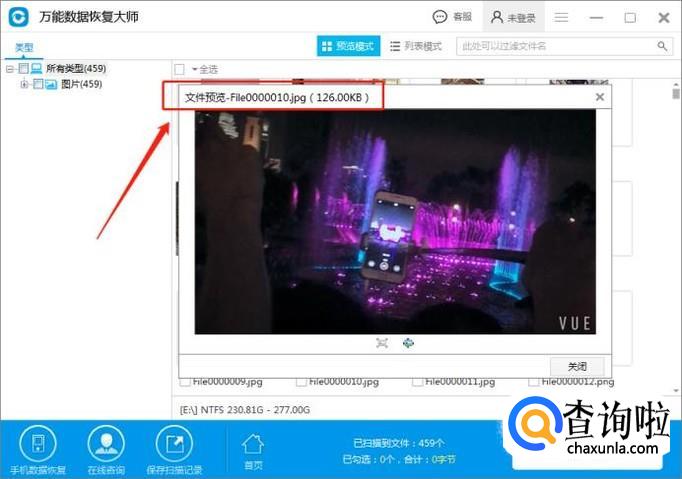 开始进入扫描数据,在扫描完成后,界面上就可以看到扫描出来的数据,由于是格式化的数据恢复,所以一定要记得先查看扫描的结果,扫描出来才表示能恢复的,还要事先预览数据是否完整。