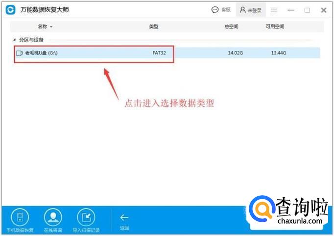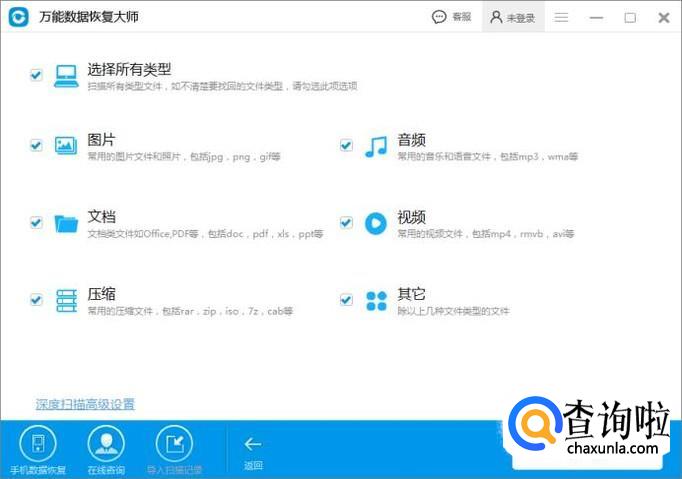 进入选择数据类型,根据手机要恢复的类型,选择需要的内容打钩。