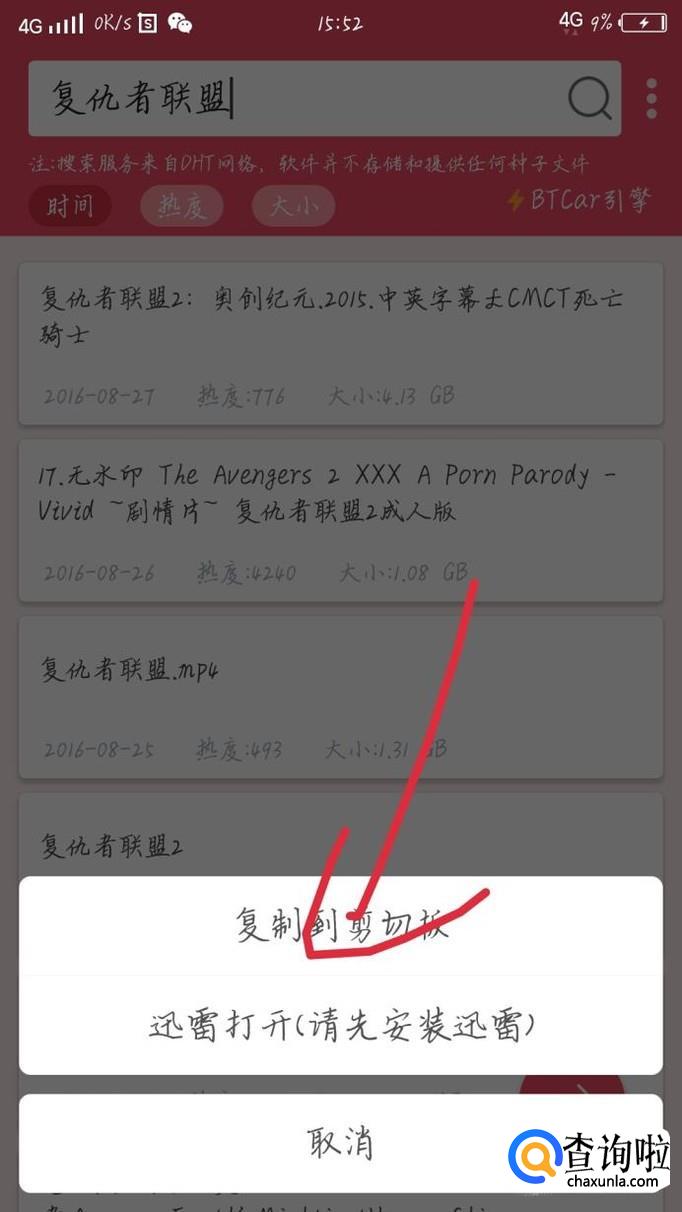 以复仇者联盟这个视频为例,在搜索框里输入复仇者联盟会出现一个新的界面,如图1所示。点击第一个,会进入一个新的界面,如图2所示