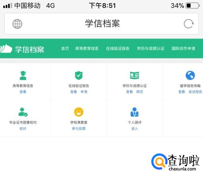 然后我们就可以进入到学信网的个人中心了,然后找到学历与成绩认证,点击查看进入到学历与成绩认证的界面。
