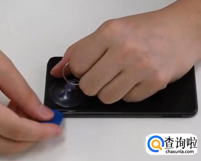然后用个毛巾,小吸盘之类的东西把手机后盖打开,当有个缝隙的时候便可以用小刀片慢慢划开,这里小编提醒小伙伴们一句,一定注意别划着手、慢慢取下来。