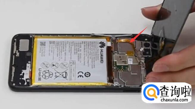 然后再用小刀片将固定电池的东西慢慢挑开,最后再借助小刀片将电池取下来,电池也是慢慢划开,也可借助着吹风划开。