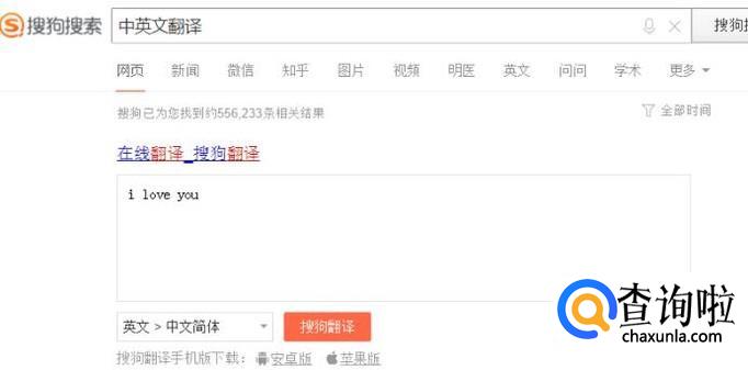然后输入我们想要的英文并点击搜狗翻译。如下图所示。