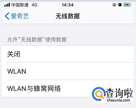 然后选择WLAN与蜂窝网络,退出后重新打开app就不会有提示了。