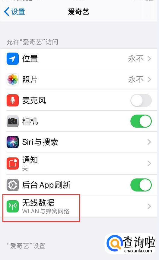 在设置里往下翻,找到爱奇艺并点击进入。