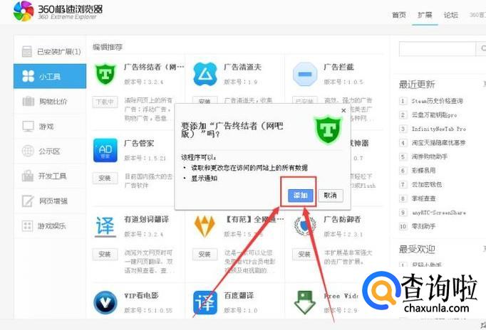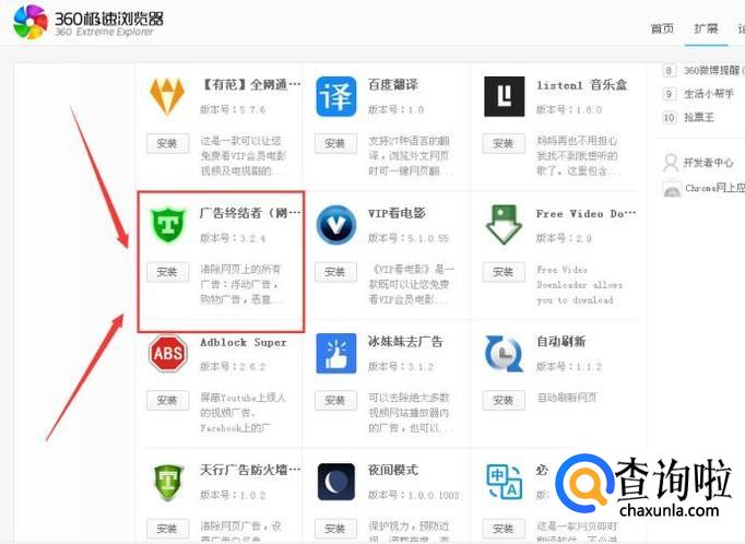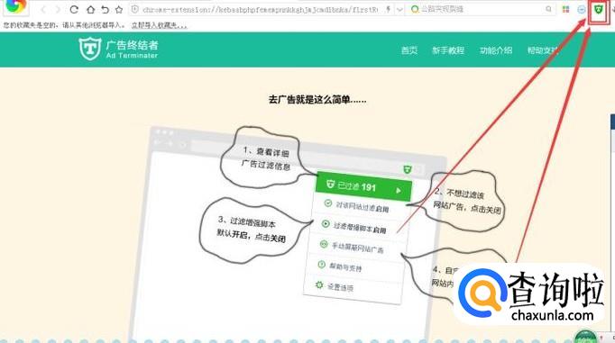 添加成功后可以在浏览器右上角看到“广告终结者”标识,这就证明已经成功添加了。