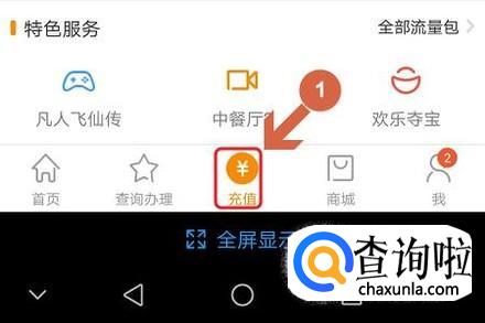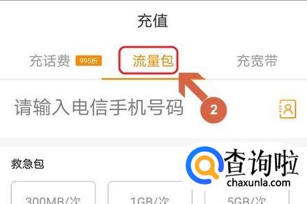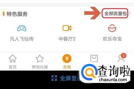 如果流量即将告急,那么点击页面下方的“充值”-“流量包”即可,如图所示...