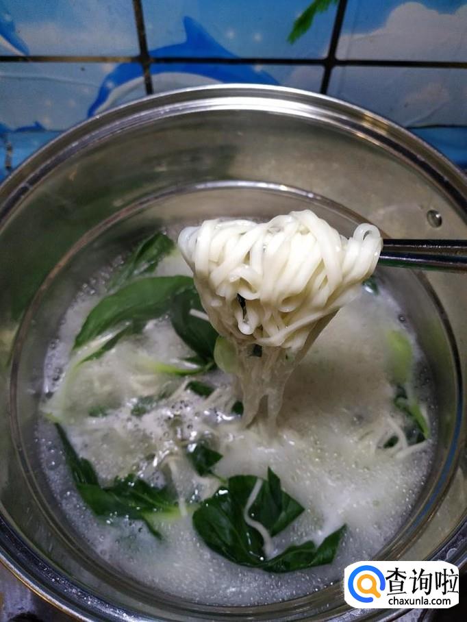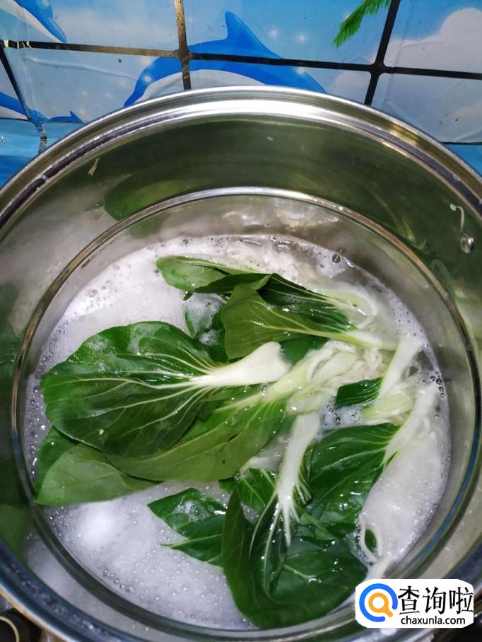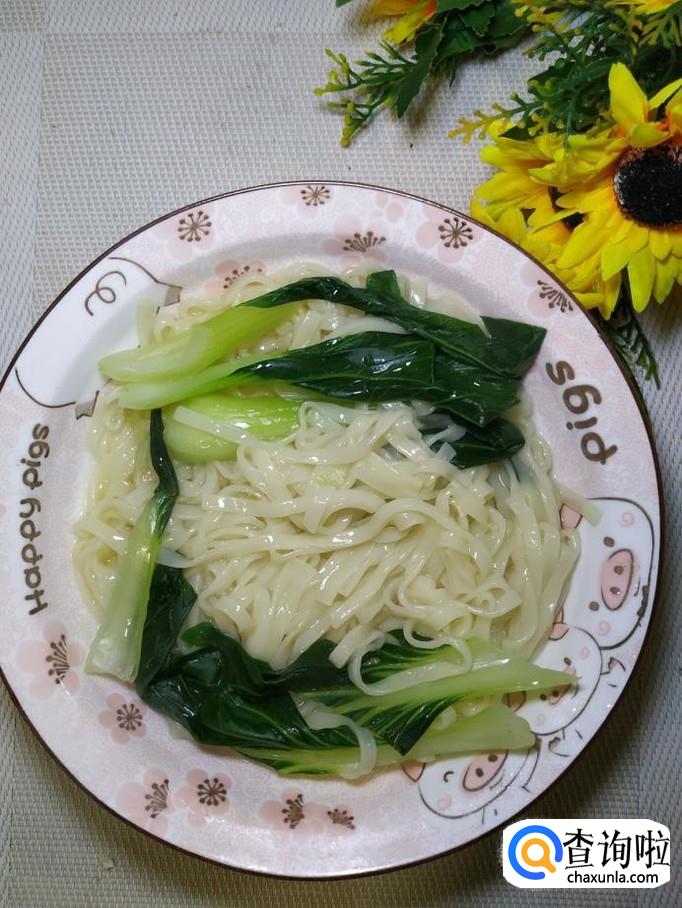 汤锅中烧开水,水开后,将挂面倒入锅中煮一下,然后准备适量青菜,洗净后,和面条一起煮一下,煮熟之后,捞出装碗备用。