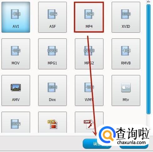 接着选择MP4并点击确定,如下图所示。