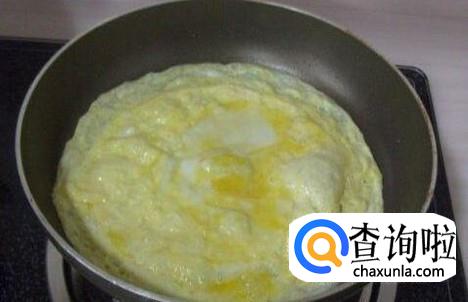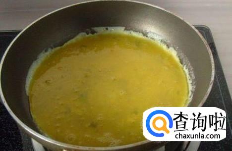 锅中加入适量油,烧热,将鸡蛋液倒。