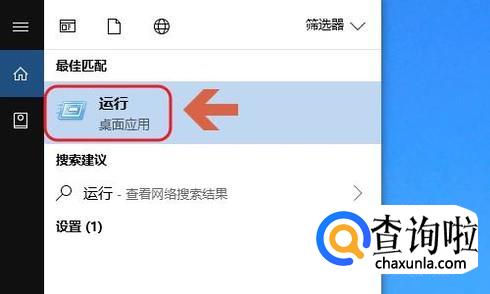 在小娜输入框输入“运行”,然后页面上方会显示运行命令,如图所示...