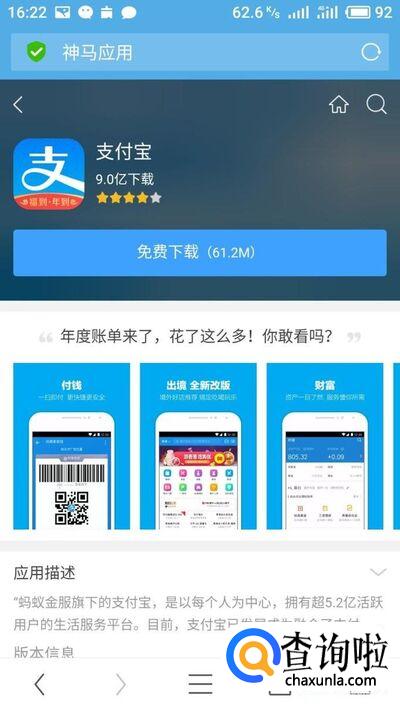 打开以后点击免费下载,然后就可以成功下载低版本的支付宝了。