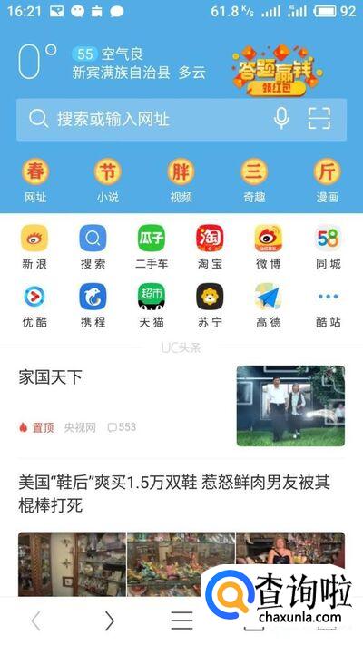 打开手机找到手机中的浏览器,打开浏览器进入浏览器的首页。
