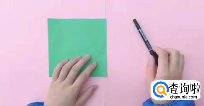 将彩纸对折两次出现两条线,再沿对角折成两次出现八条线。