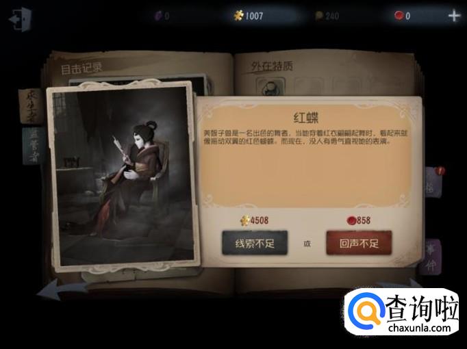 最后玩家可以通过回声或者线索购买获得红蝶。