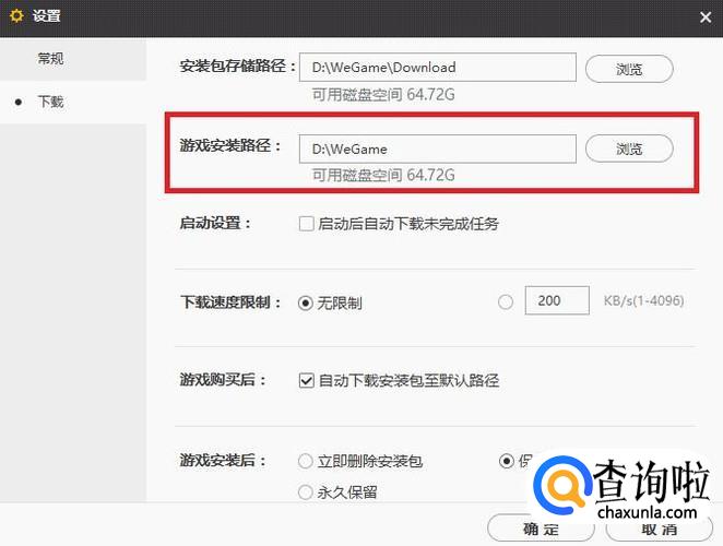 点击“游戏安装路径”后面的“浏览”选项,即可对WeGame的游戏安装路径进行更改。