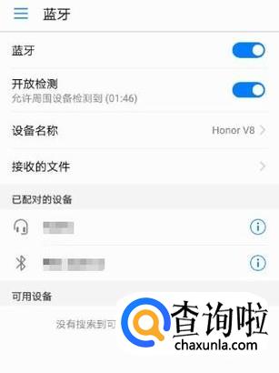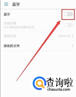 进入到蓝牙界面,向右拖动小滑块,将其打开,如图所示。