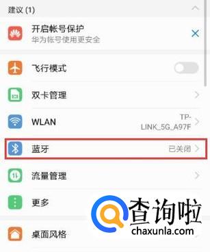 进入设置界面之后,找到蓝牙,点击并进入下一页面,如图所示。