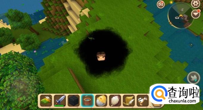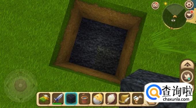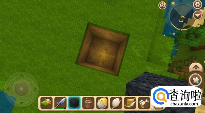 然后我们找一片空地,然后挖一个高度超过2个方块的坑,如图所示。