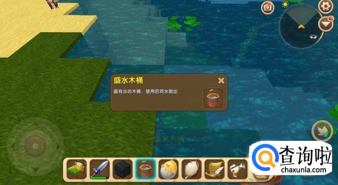 然后我们需要获取一些水, 水很好获得,制作一个水桶或铁桶,在采集石油块的时候顺便打点水就可以了。